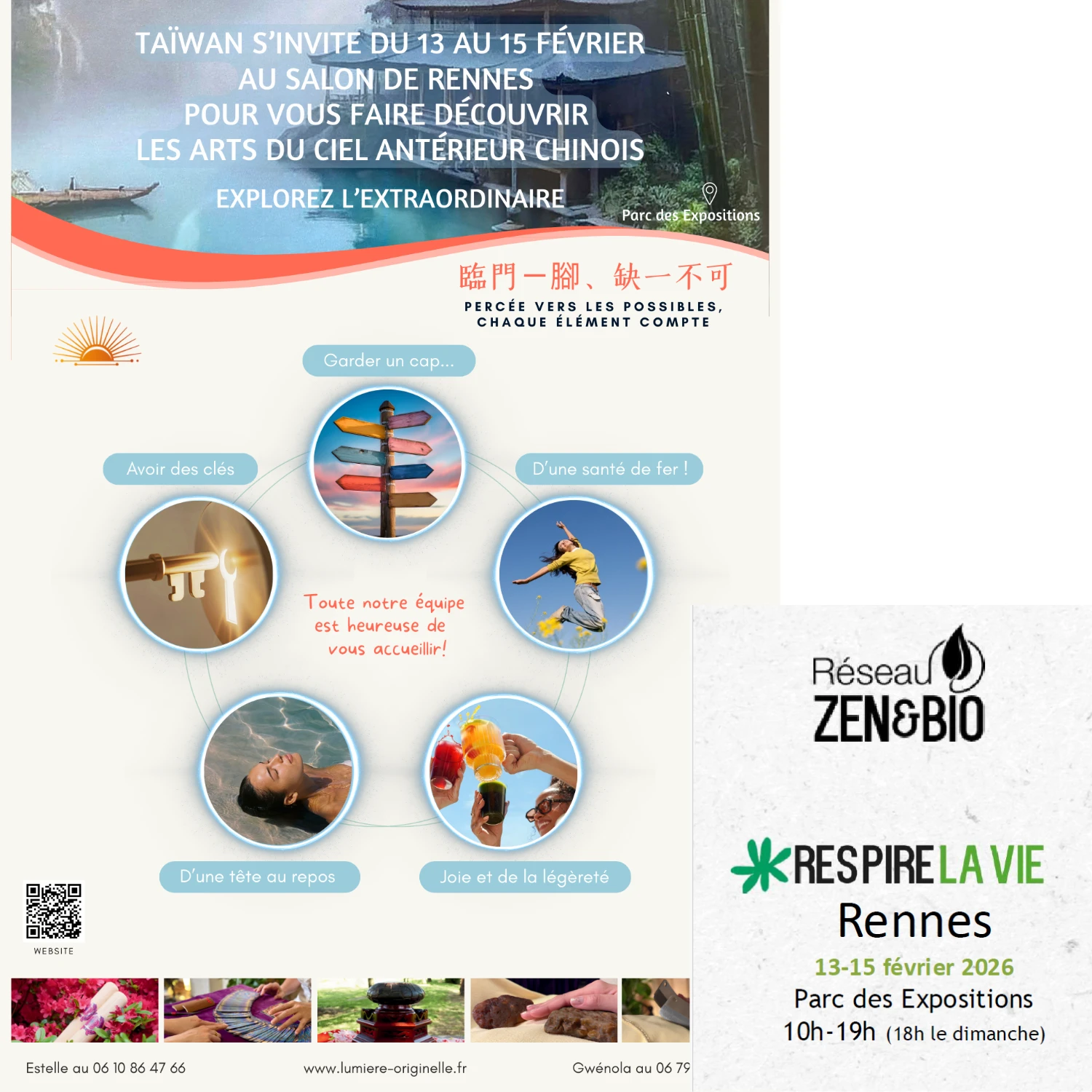 Du vendredi 13 au dimanche 15 février, au Parc des Expositions de Rennes, nous vous invitons à venir à notre rencontre pour découvrir nos soins, consultations et l’univers qui les accompagne, au cœur des Arts du Ciel Antérieur chinois.